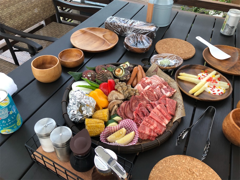 BBQグリルで焼いていきます。外には空調がないので暑いですが、美味しくて満足満足。