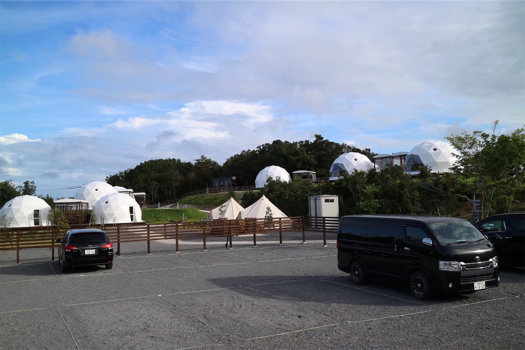 グランドームはグランピングをテーマにドームに宿泊できる施設です。写真のような白いドームに宿泊します。京都の天橋立にもありますが、今回は伊勢のグランドームに訪問しました。